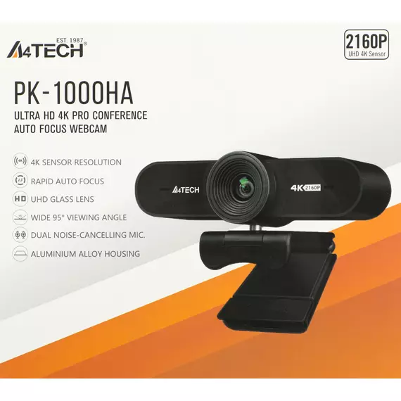 Веб-камера A4-Tech PK-1000HA черный 8Mpix (3840x2160) USB2.0 с микрофоном