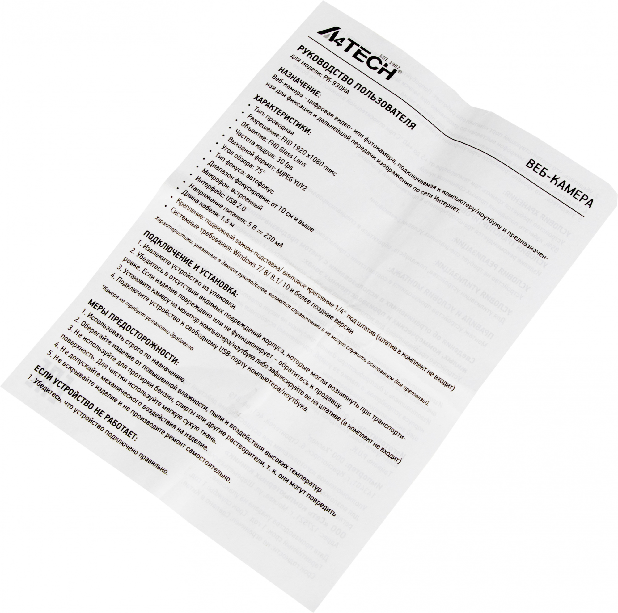 Камера Web A4-Tech PK-930HA черный 2Mpix (1920x1080) USB2.0 с микрофоном