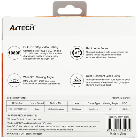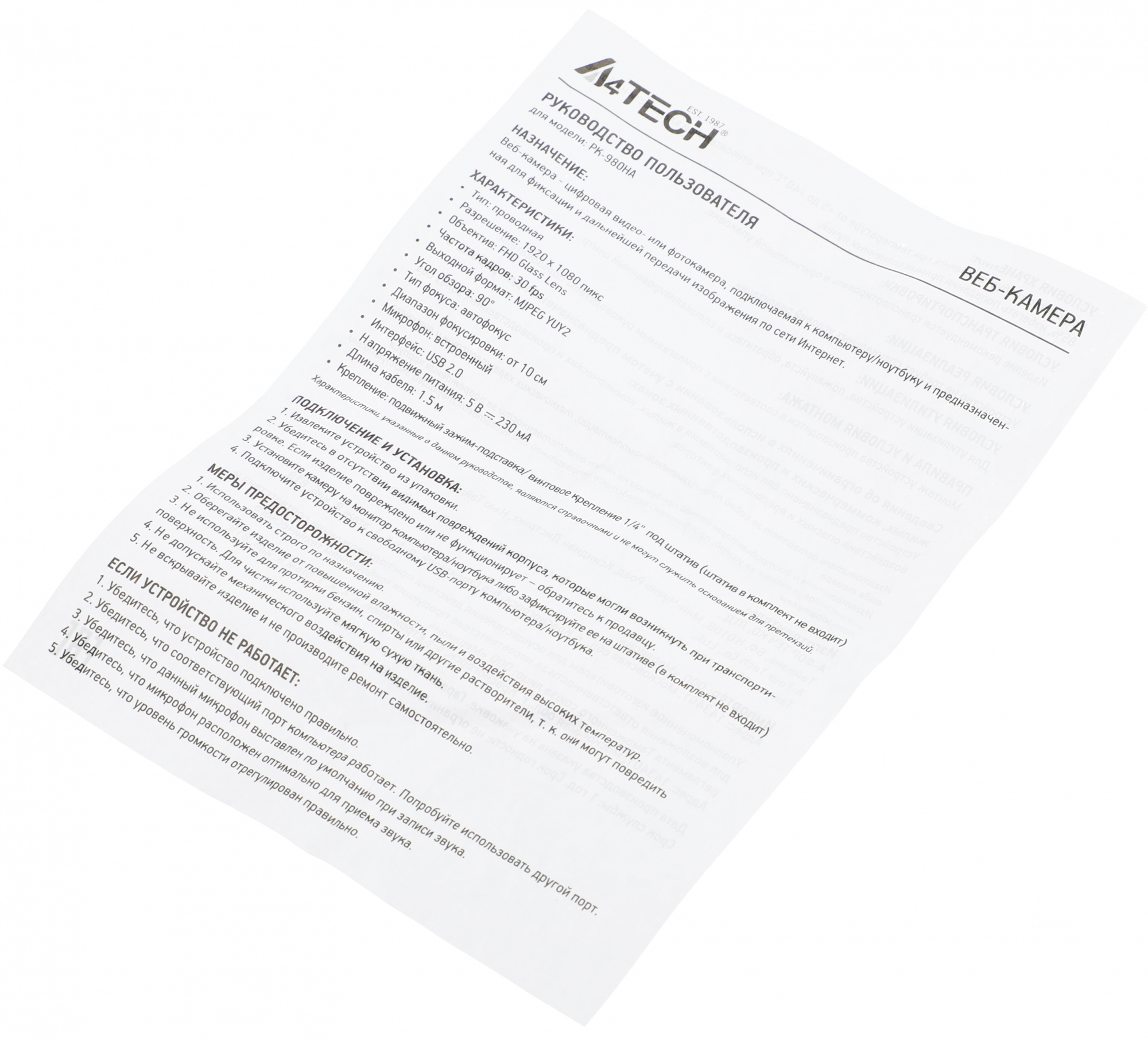 Камера Web A4-Tech PK-980HA черный 2Mpix (1920x1080) USB2.0 с микрофоном