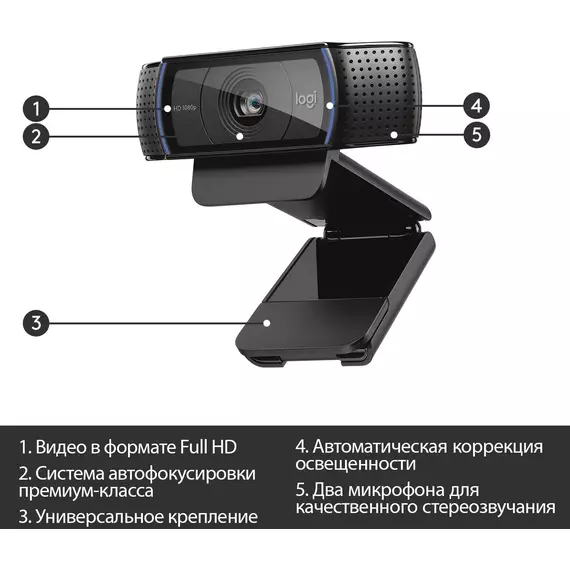 Камера Logitech HD Pro C920 черный 2Mpix (1920x1080) USB2.0 с микрофоном RTL [960-000998]