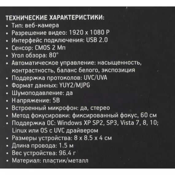| Формат видеовызовов | MJPG/YUY2 |