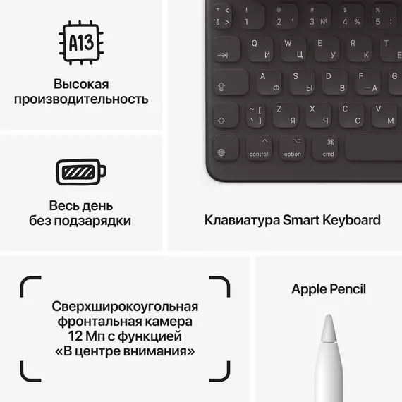 | Комплект поставки | iPad 2021, Кабель USB-C/Lightning, Адаптер питания USB-C мощностью 20 Вт |
