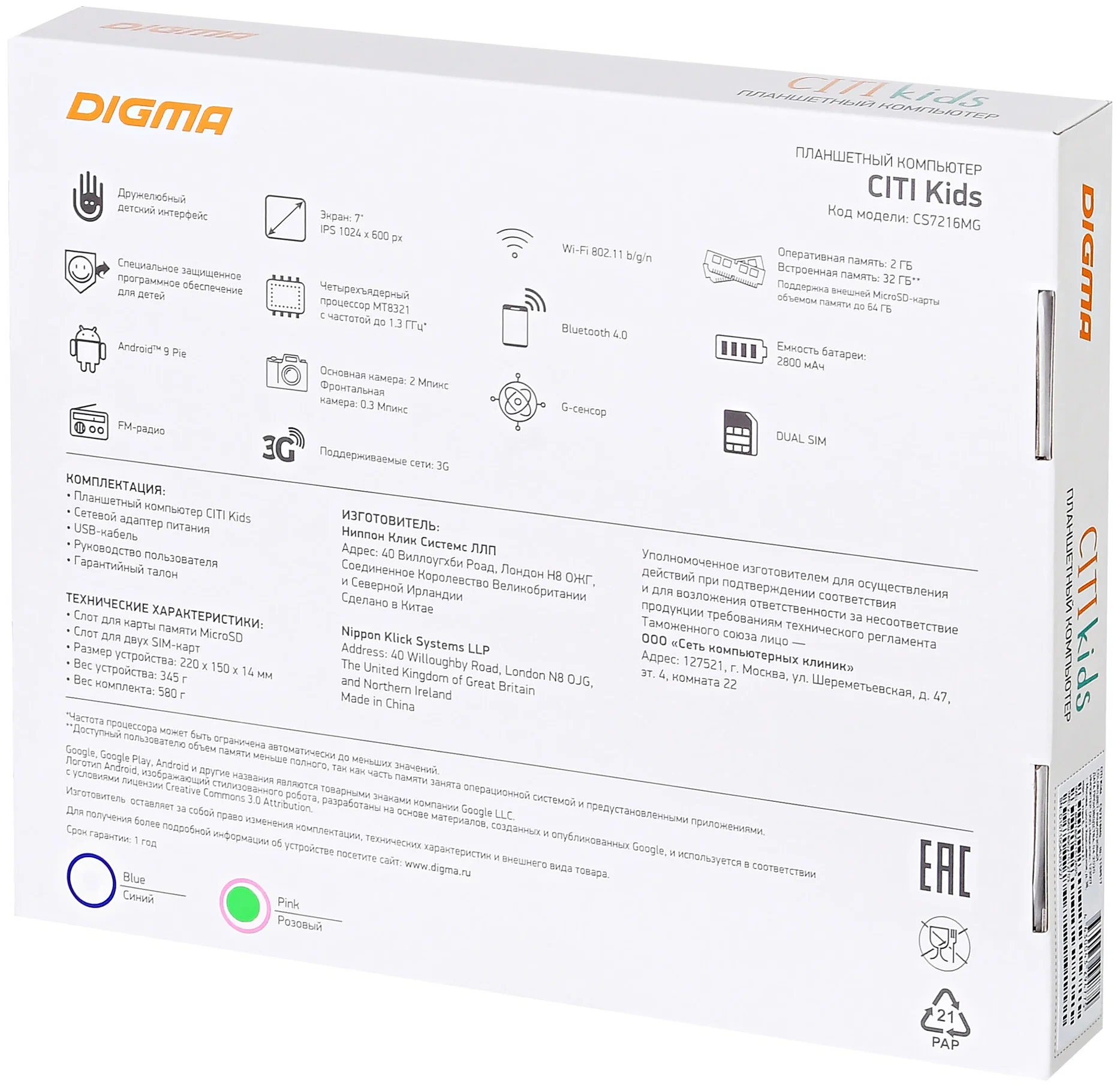 Наличие товара Digma CITI Kids розовый [CS7216MG]