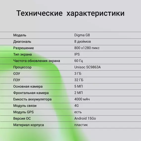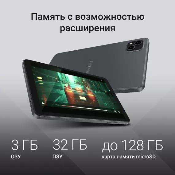 Планшет Digma G8 SC9863A (1.6) 8C RAM3Gb ROM32Gb 8" IPS 1280x800 4G Android 15 Go темно-серый 5Mpix 2Mpix BT WiFi microSD 128Gb 4000mAh 191hrs [DA6B8P02]