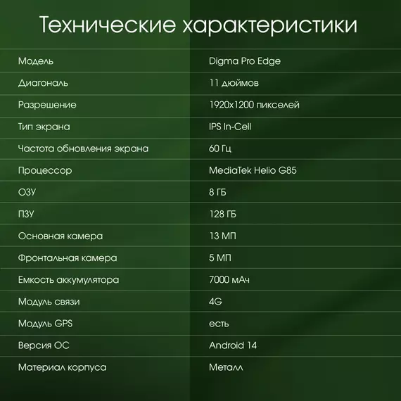 Планшет Digma Pro Edge G85 (2.0) 8C RAM8Gb ROM128Gb 11" In-Cell 1920x1200 4G 2Sim Android 14 серый космос 13Mpix 5Mpix BT WiFi microSD 256Gb 7000mAh [TA3D1M01]