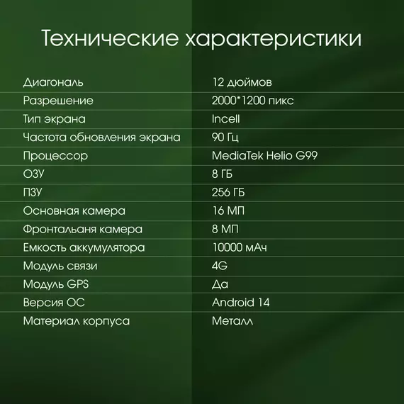 | Диагональ экрана | 12 " |