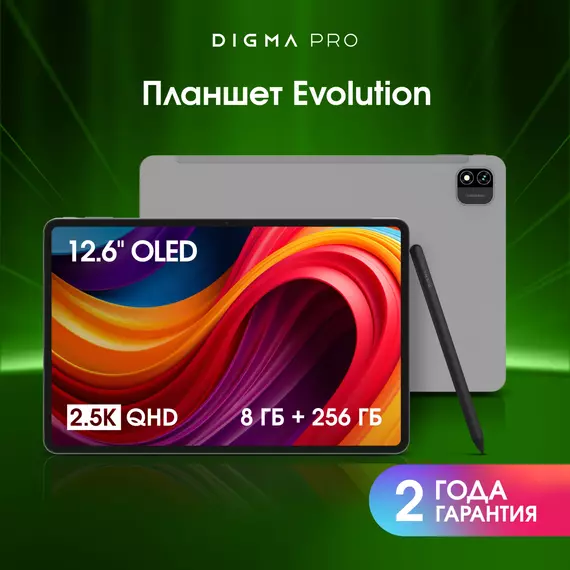 Планшет Digma Pro Evolution G99 2.2 8C RAM8Gb ROM256Gb 12.6" OLED 2560x1600 4G Android 15 серебристый 13Mpix 5Mpix BT WiFi microSD 1Tb 9500mAh 94hrs [TA3E2M03]