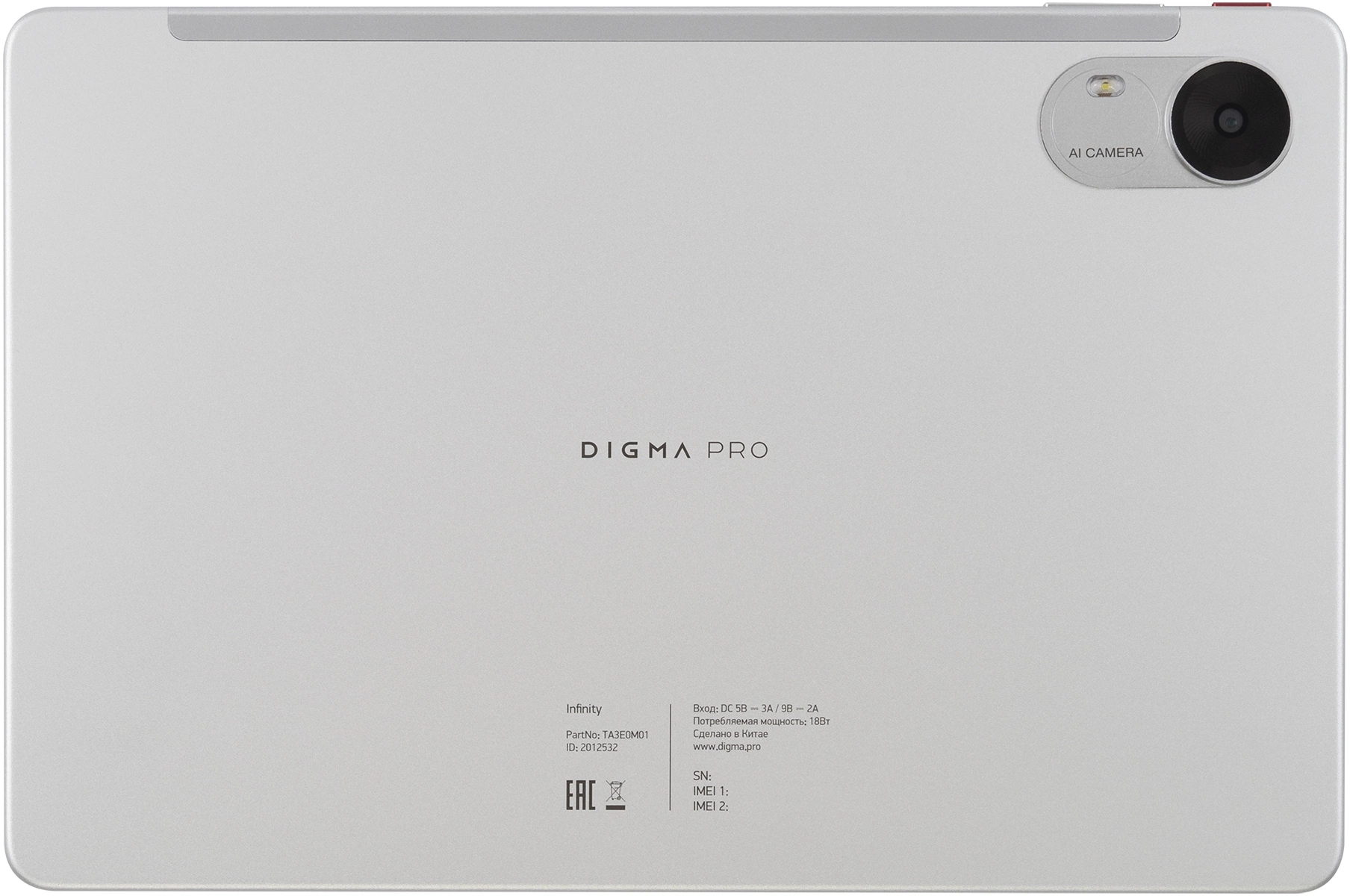 Планшет Digma Pro Infinity G85 (2.0) 8C RAM8Gb ROM256Gb 10.1" In-Cell 1920x1200 4G 2Sim Android 14 серебристый 13Mpix 5Mpix BT WiFi microSD 128Gb 7000mAh [TA3E0M01]