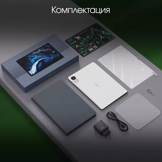 | Комплект поставки | Сетевой адаптер питания; USB-C кабель; защитное стекло; набор наклеек; салфетка для экрана; скрепка для извлечения SIM-карты; защитный чехол |