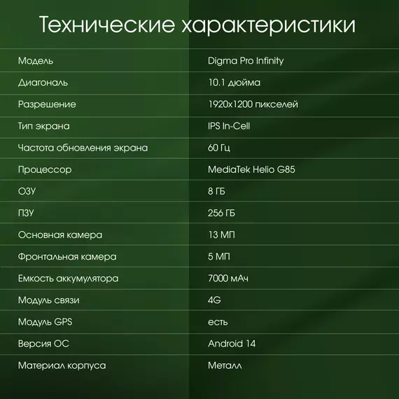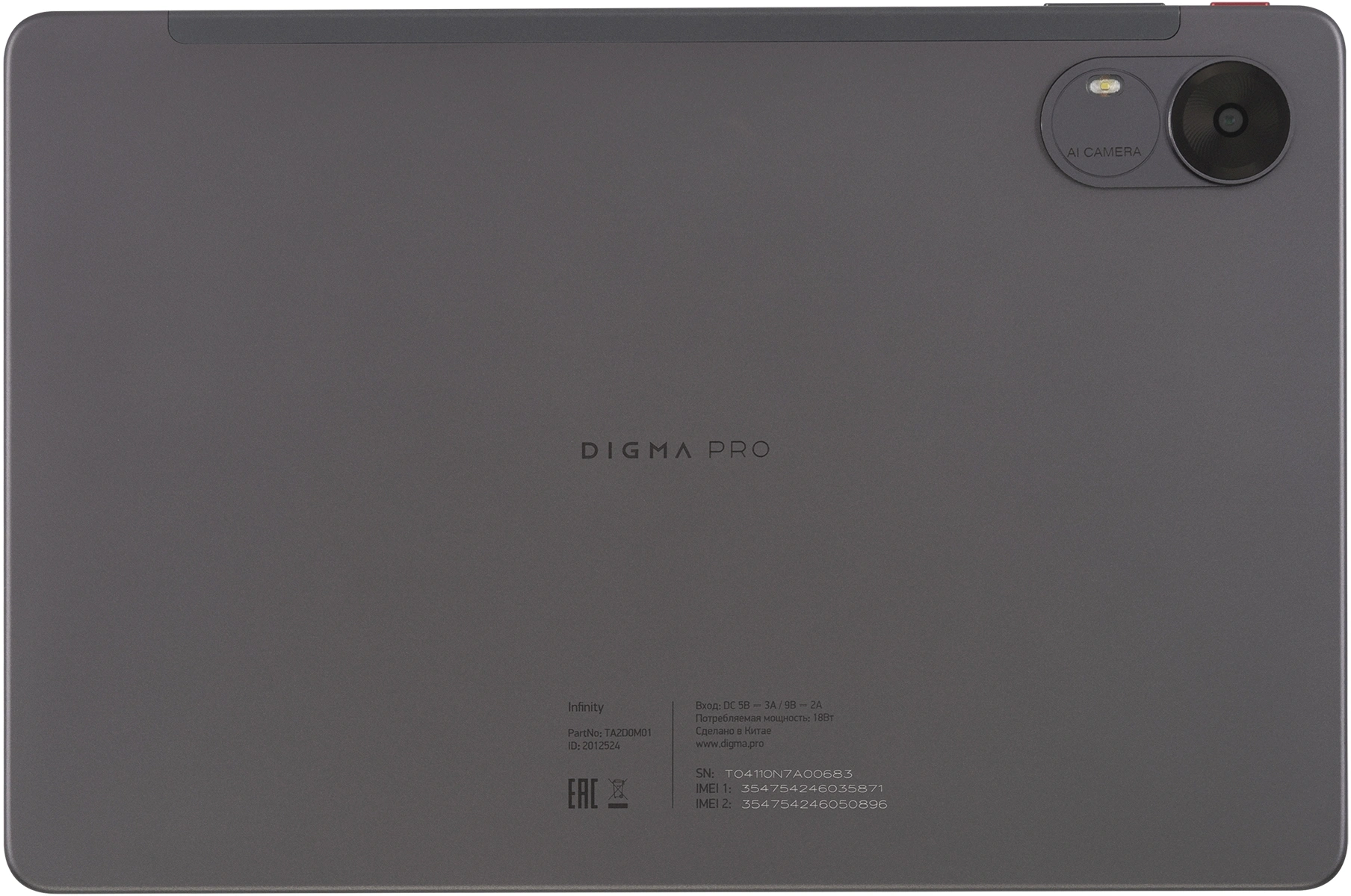 Планшет Digma Pro Pro Infinity G85 (2.0) 8C RAM6Gb ROM128Gb 10.1" In-Cell 1920x1200 4G 2Sim Android 14 темно-серый 13Mpix 5Mpix BT WiFi microSD 256Gb 7000mAh 200hrs [TA2D0M01]