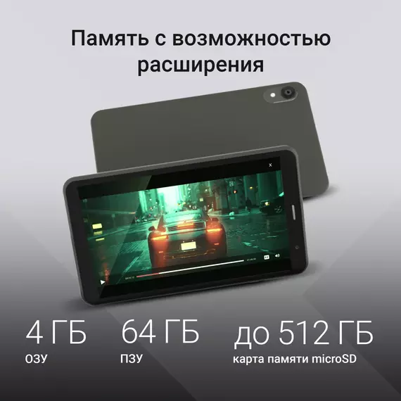 Планшет Digma R8 T606 (1.6) 8C RAM4Gb ROM64Gb 8" IPS 1280x800 4G Android 15 темно-серый 5Mpix 2Mpix BT WiFi microSD 512Gb 4000mAh 168hrs [DA1C8P02]