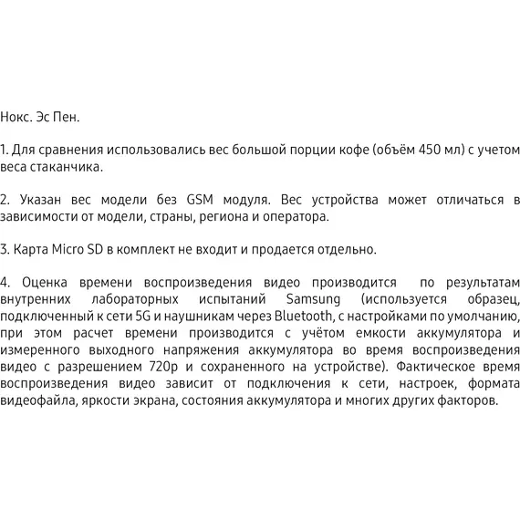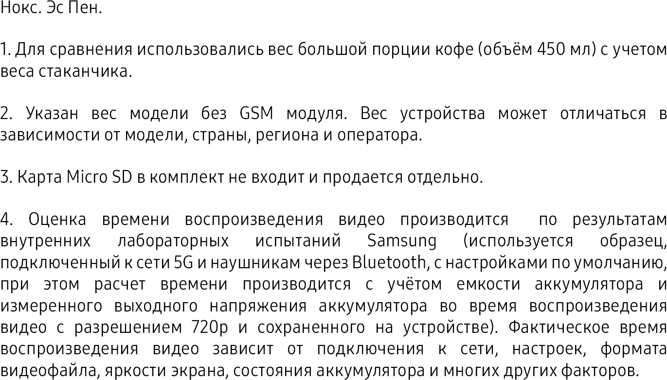 | Комплект поставки | Электронное перо S Pen, кабель USB Type-C, руководство пользователя |