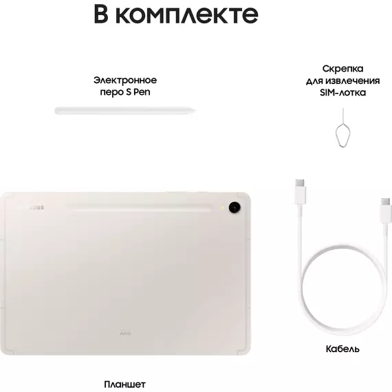 | Комплект поставки | Планшет, электронное перо S Pen, кабель Type-C (m) - Type-C (m), скрепка для извлечения SIM-лотка |