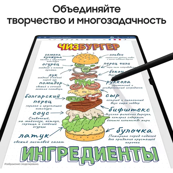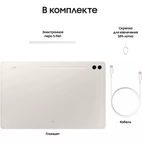 | Комплект поставки | Планшет, электронное перо S Pen, кабель Type-C (m) - Type-C (m), скрепка для извлечения SIM-лотка |