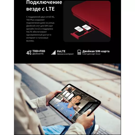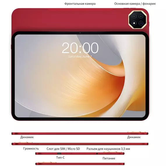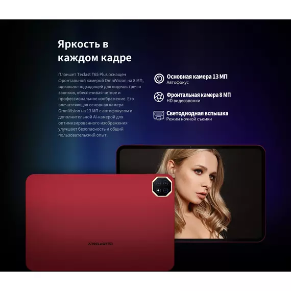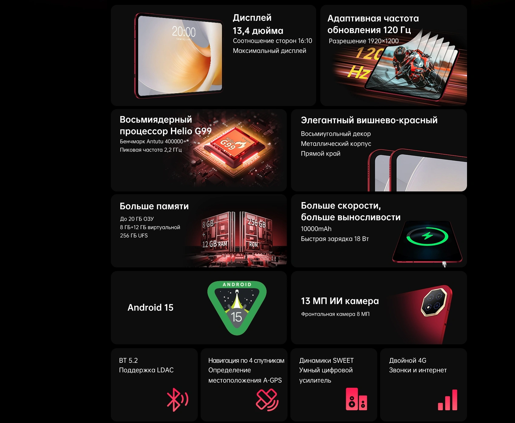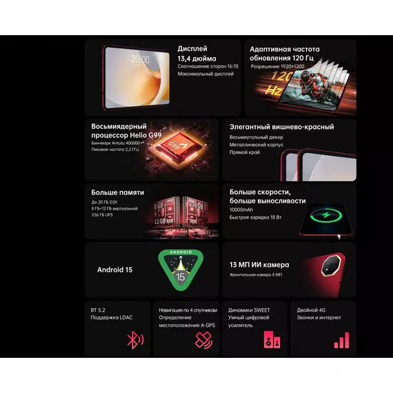 Планшет Teclast T65 Plus Premium set G99 (2.2) 8C RAM8Gb ROM256Gb 13.4" IPS 1920x1200 4G Android 15 красный 13Mpix 8Mpix BT WiFi microSD 1Tb 10000mAh 32hr [1747210]