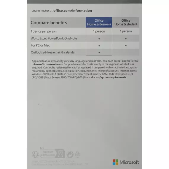 Описание Microsoft Office Home and Business 2021 English CEE Only Medialess [T5D-03516]