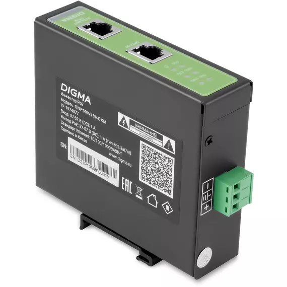 Инжектор PoE Digma DNP30W48GDXM 10/100/1000BASE-T, 30Вт, 37-57В(DC)