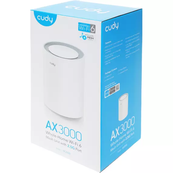 | Комплектация | AX3000 Wi-Fi Mesh роутер, адаптер питания, RJ45 Ethernet кабель, руководство быстрой установки |