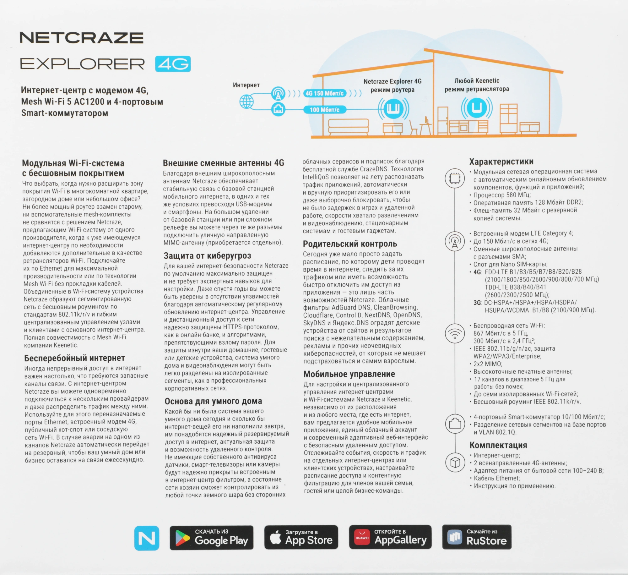 | Комплектация | Устройство, 4G-антенны, адаптер питания: 12 В 1 A, кабель Ethernet, инструкция по применению. |