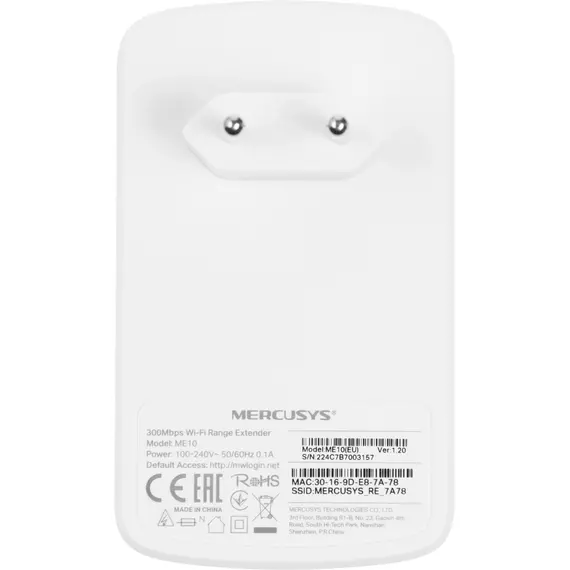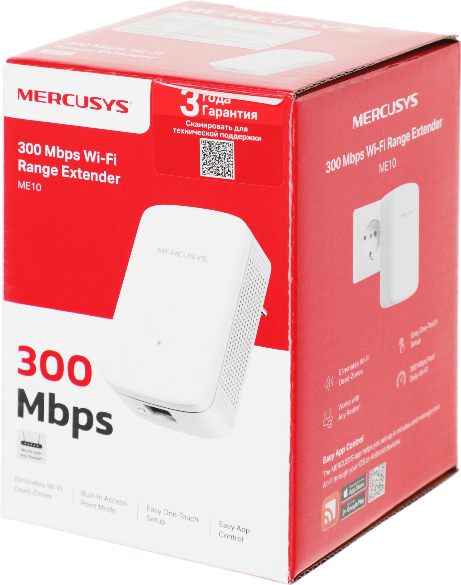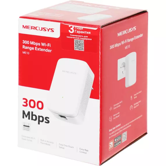 Повторитель беспроводного сигнала Mercusys ME10 N300, 10/100BASE-TX, белый