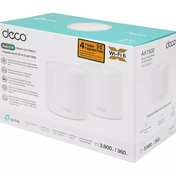 Бесшовный Mesh роутер TP-Link Deco X10(2-PACK) AX1500, 10/100/1000BASE-TX, белый, упак.:2шт