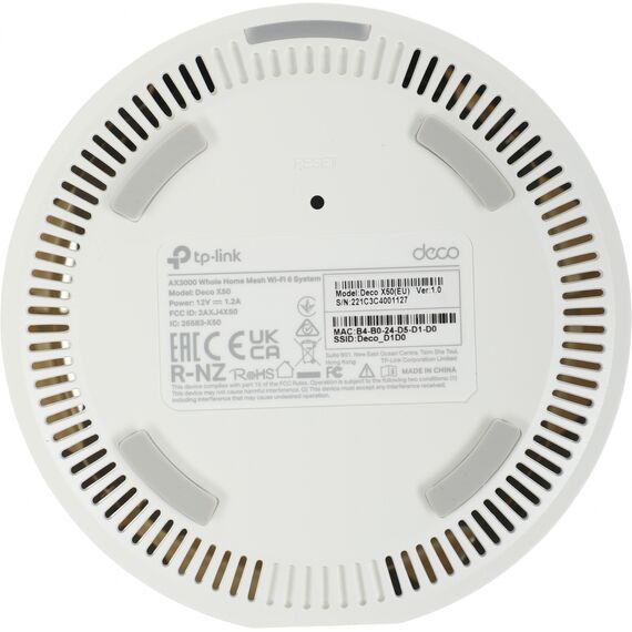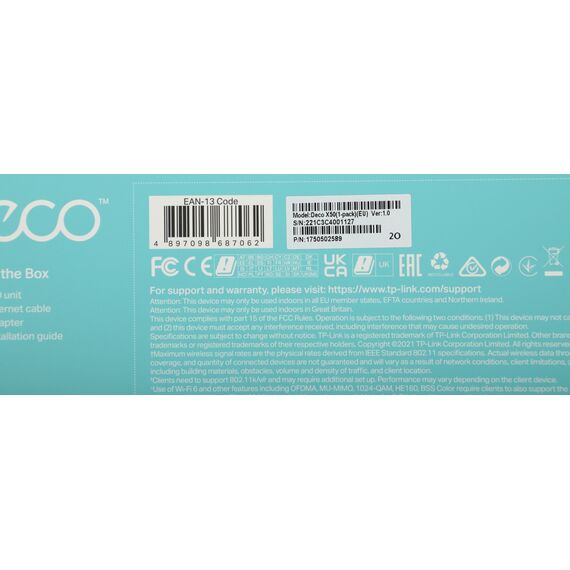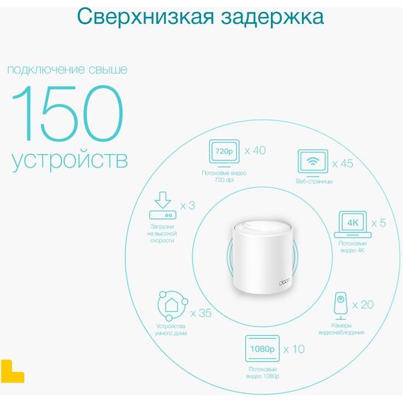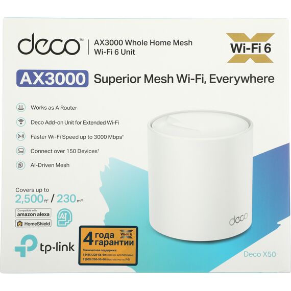 | Комплектация | Deco X50 (1 шт.), Кабель Ethernet RJ45, Адаптер питания (1 шт.), Руководство по быстрой настройке |