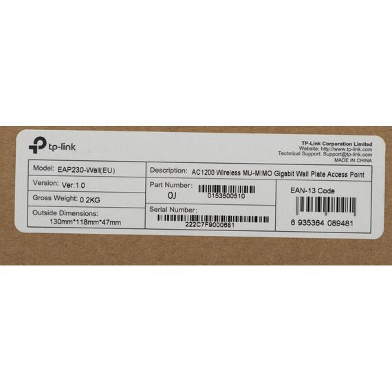 Точка доступа TP-Link EAP230-Wall Wireless AC Wall-Plate Access Point, 1UTP 1000Mbps PoE, 802.11a/b/g/n/ac, 867Mbps, 2x4dBi
