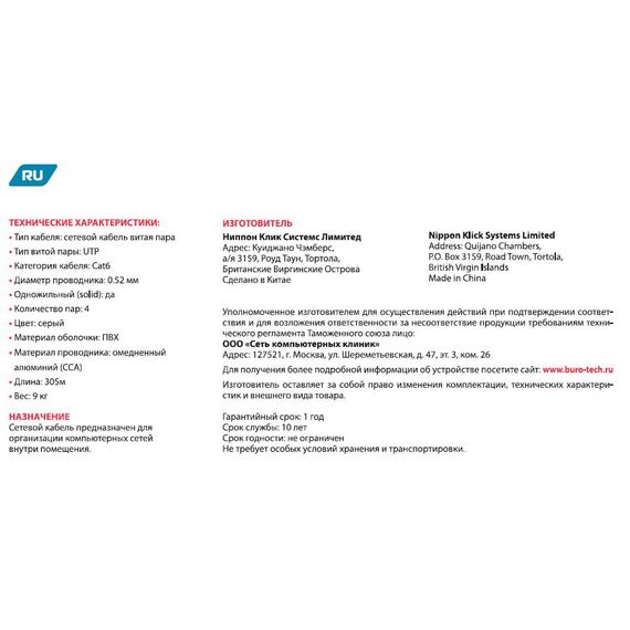 Описание BURO BU-CCA-052-CAT6