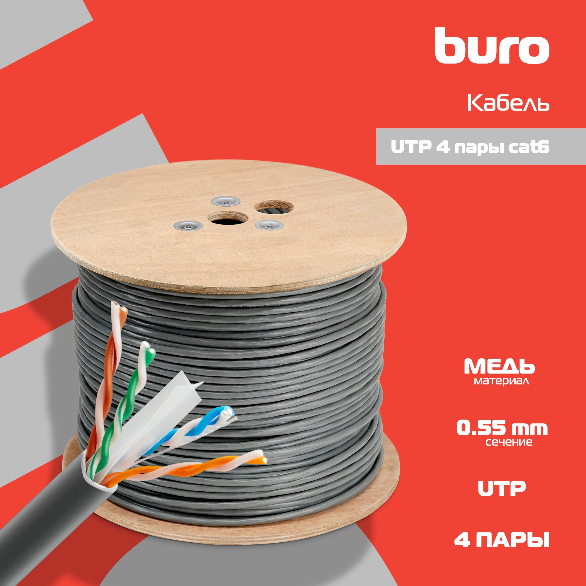 Кабель сетевой BURO BU-COP-055 UTP 4 пары cat.6 solid 0.55мм Cu 305м серый