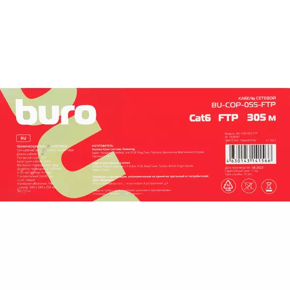 Кабель сетевой Buro BU-COP-055-FTP FTP 4 пары cat.6 solid 0.55мм Cu 305м серый