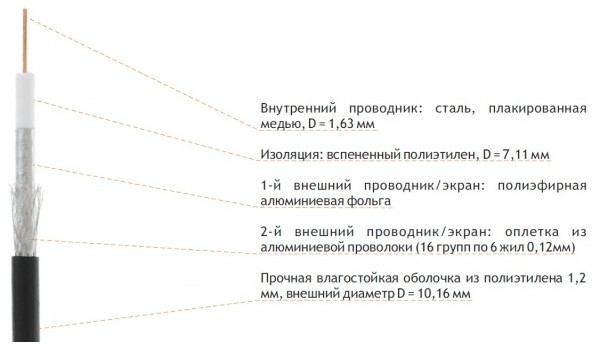 * 2-й экран - оплетка из алюминиевой проволоки с площадью покрытия 47 %