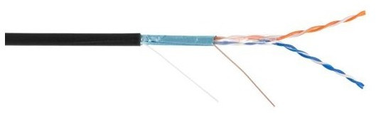 - экранированном исполнении, соответствует категории 5 и предназначен для внешней прокладки. Внешняя оболочка изготавливается из прочного, влагостойкого полиэтилена.