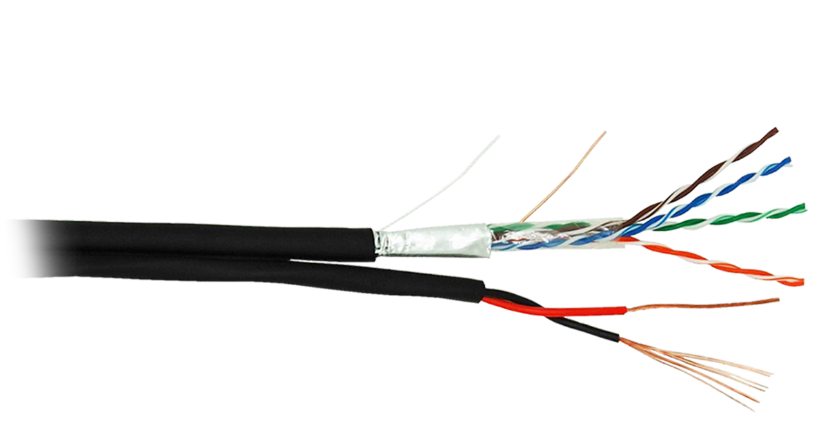 Четырехпарный кабель на основе витой пары, категории 5e применяется для организации высокоскоростных кабельных сегментов со скоростью передачи данных до 1 Гбит/c. Также может быть использован для передачи аналоговой информации, а так же имеет в своем составе кабель питания сечением 0,50 mm2, который возможно использовать для подключения к камерам видео наблюдения. Кабель EC-UF004-5E-PC050-PE-BK содержит 4 пары витых медных проводников и 1 пару медных проводников для кабеля питания, выполнен в экранированном исполнении, соответствует категории 5e и предназначен для внешней прокладки. Поставляется на фанерных барабанах, по 305м.
