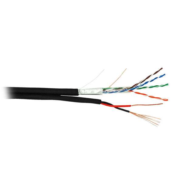 Кабель Netlan EC-UF004-5E-PC050-PE-BK F/UTP 4 пары, Кат.5e (Класс D), 100МГц, одножильный, BC (чистая медь), с многожильным силовым кабелем 0,50мм2, внешний, PE до -40C, черный, 305м