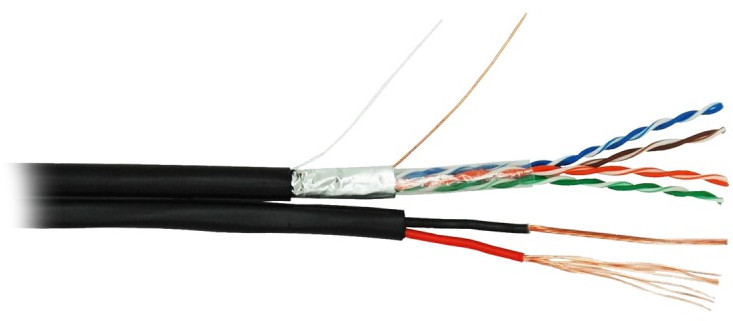 Четырехпарный кабель на основе витой пары, категории 5e применяется для организации высокоскоростных кабельных сегментов со скоростью передачи данных до 1 Гбит/c. Также может быть использован для передачи аналоговой информации, а так же имеет в своем составе кабель питания сечением 1,5 mm2, который возможно использовать для подключения к камерам видео наблюдения. Кабель EC-UF004-5E-PC150-PE-BK содержит 4 пары витых медных проводников и 1 пару медных проводников для кабеля питания, выполнен в экранированном исполнении, соответствует категории 5e и предназначен для внешней прокладки. Поставляется на фанерных барабанах, по 305м.