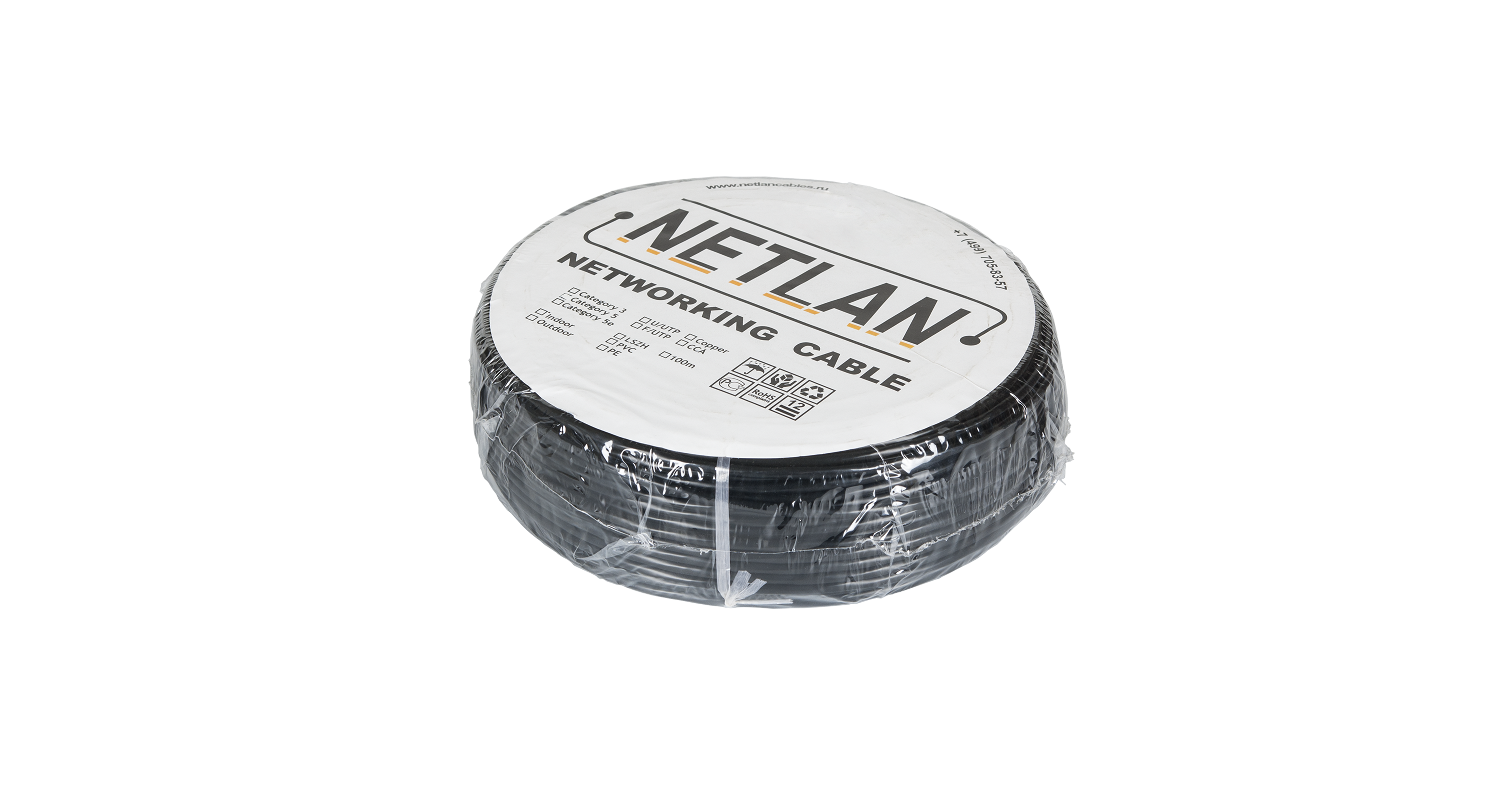 Кабель Netlan EC-UU004-5E-PE-BK-1 U/UTP 4 пары, Кат.5e (Класс D), 100МГц, одножильный, BC (чистая медь), внешний, PE до -40C, черный, 100м