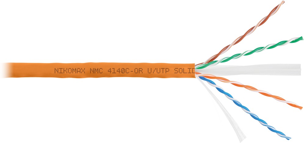 Кабель Nikomax NMC 4140C-OR U/UTP 4 пары, Кат.6, внутренний, одножильный, BC (чистая медь), оранжевый, 305м
