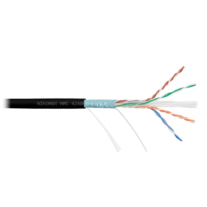 Кабель Nikomax NMC 4240C-BK F/UTP 4 пары, Кат.6 (Класс E), тест по ISO/IEC, 250МГц, одножильный, BC (чистая медь), 23AWG (0,55мм), полимерный материал нг(А)-HF, внутренний/внешний, черный, 305м