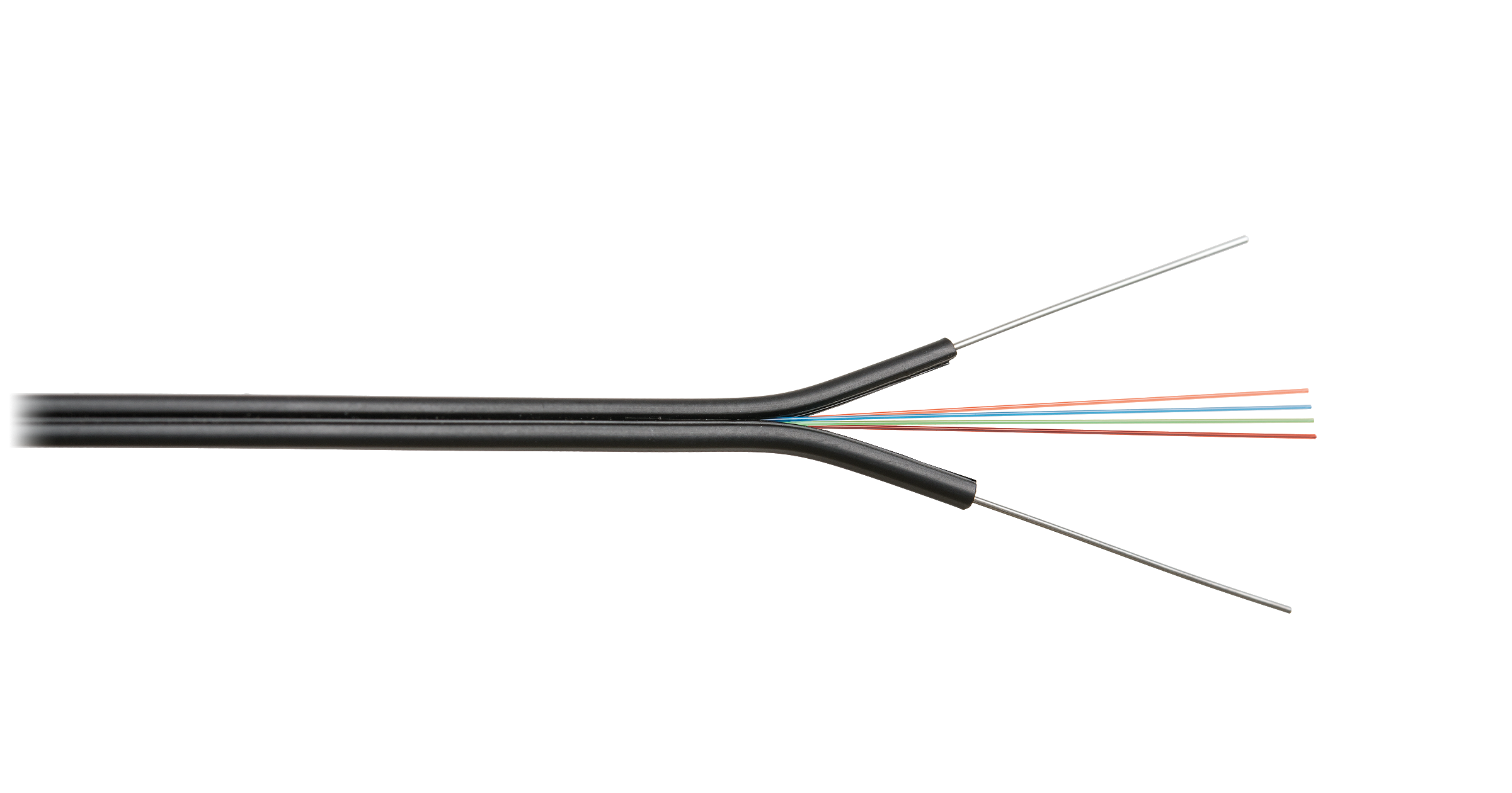 Кабели NMF-2PF-xxxA1С-zz содержит одно, два, четыре оптических волокон, соответствующих стандартам ITU-T G.652.D & G.657.A1. Кабель усилен двумя силовыми элементами в виде стальных проволок, расположенных по бокам, в оболочке Внешняя оболочка выполнена из светостабилизированного не распространяющего горение при групповой прокладке и не выделяющего коррозионно-активных газообразных продуктов при горении и тлении, полимерного материала в исполнении нг(A)-HF.