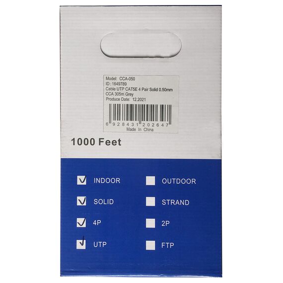Кабель сетевой Ningbo UTP 4 пары cat.5E solid 0.5мм CCA molded 305м серый
