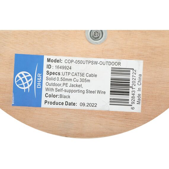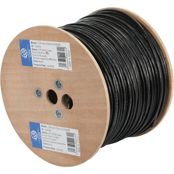 Кабель сетевой Ningbo UTP 4 пары cat.5E solid 0.5мм Cu molded 305м черный outdoor стальной трос