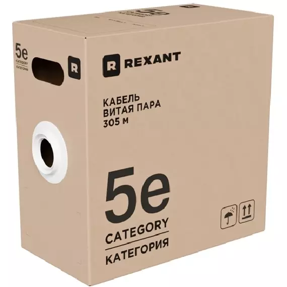 Кабель информационный Rexant кат.5E U/UTP 4 пары 24AWG PVC внутренний 305м серый [01-0041-R]