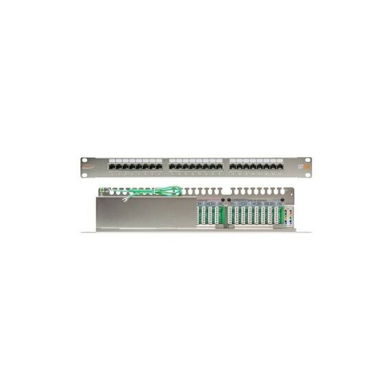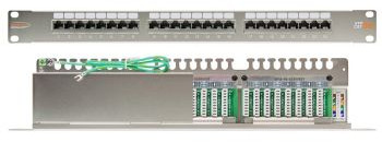 Патч-панель Nikomax NMC-RP24SD2-1U-MT 19", 1U, 24 порта, Кат.5e, RJ45/8P8C, 110/KRONE, T568A/B, полный экран, с органайзером, металлик