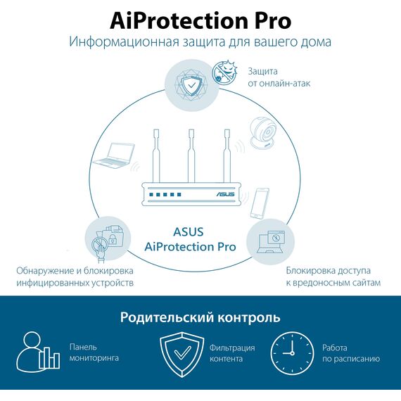 | Средства защиты сети | DMZ, Firewall, NAT, SPI, гостевая сеть, родительский контроль |