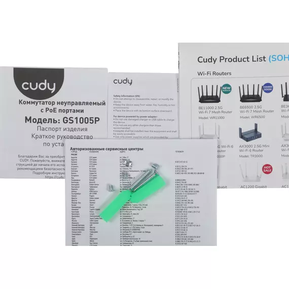 | Комплектация | Коммутатор, адаптер питания, кабель питания, набор крепежа, инструкция. |