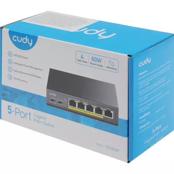 Коммутатор Cudy GS1005P (L2) 5x1Гбит/с 5PoE 60W неуправляемый