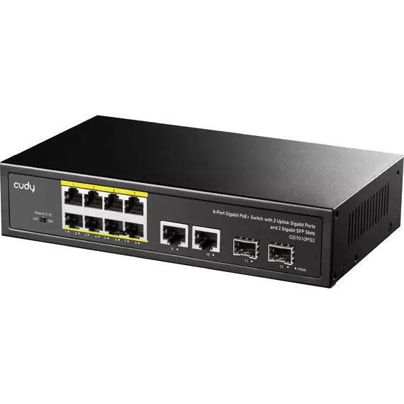 Коммутатор Cudy GS1010PS2 (L2) 10x1Гбит/с 2xКомбо(1000BASE-T/SFP) 2SFP 8PoE 120W неуправляемый