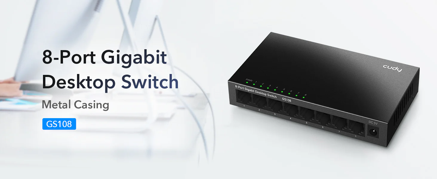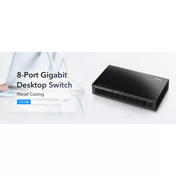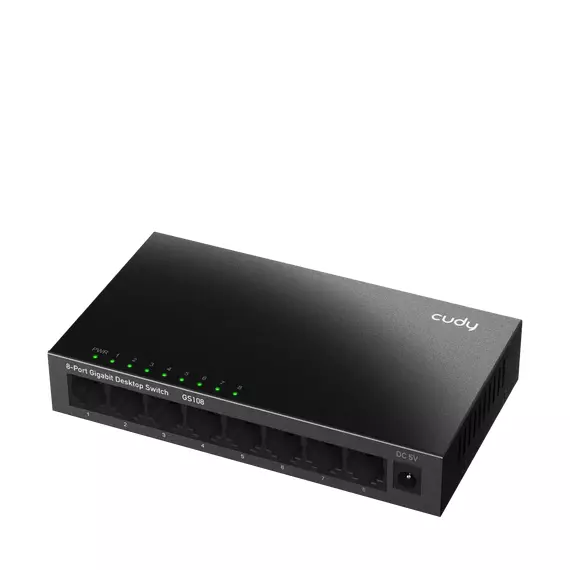 Cudy GS108 оборудован 8 портами с функцией автосогласования, обеспечивающими передачу больших файлов без помех на скорости до 1 Гбит/с. К устройству можно подключить ПК, принтеры, приставки, IP-камеры и датчики умного дома для создания локальной сети. Коммутатор функционирует в режиме store and forward, который позволяет временно хранить данные и проверять их на наличие ошибок. Благодаря неуправляемому типу устройства, его использование упрощается — подключение не требует дополнительных настроек, что делает его удобным для домашнего применения. Энергоэффективные технологии коммутатора автоматически регулируют энергопотребление при простое отдельных линий. Коммутационная таблица поддерживает до 1000 MAC-адресов.
