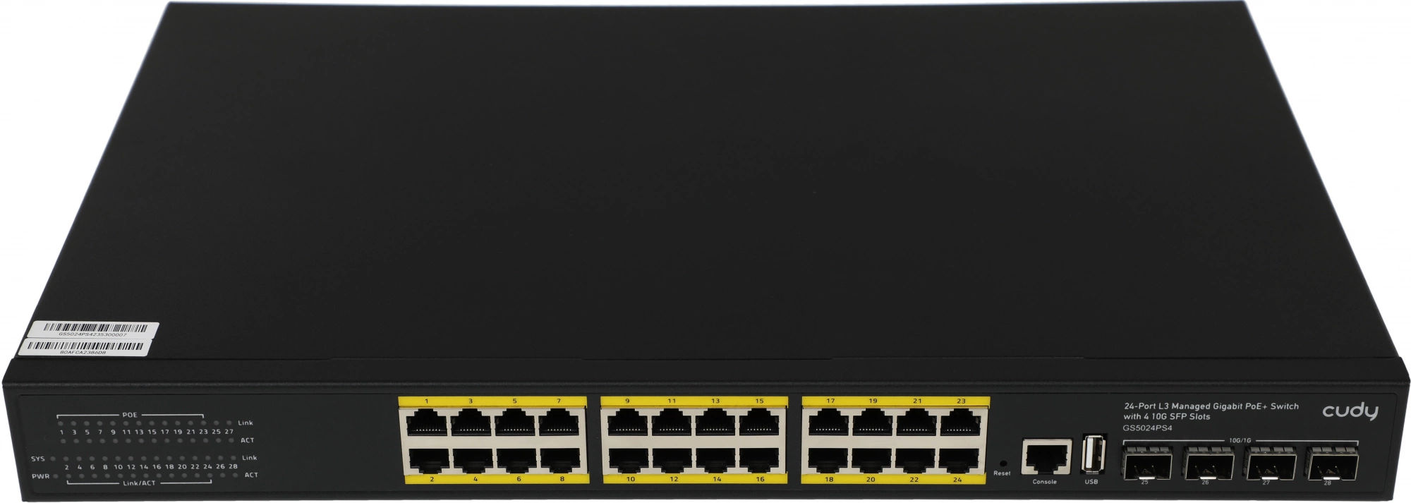 Коммутатор Cudy GS5024PS4-400W (L3) 24x1Гбит/с 4SFP+ 24PoE+ 400W управляемый