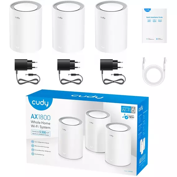 Бесшовный Mesh роутер Cudy M1800(3-PACK) AX1800 10/100/1000BASE-TX белый